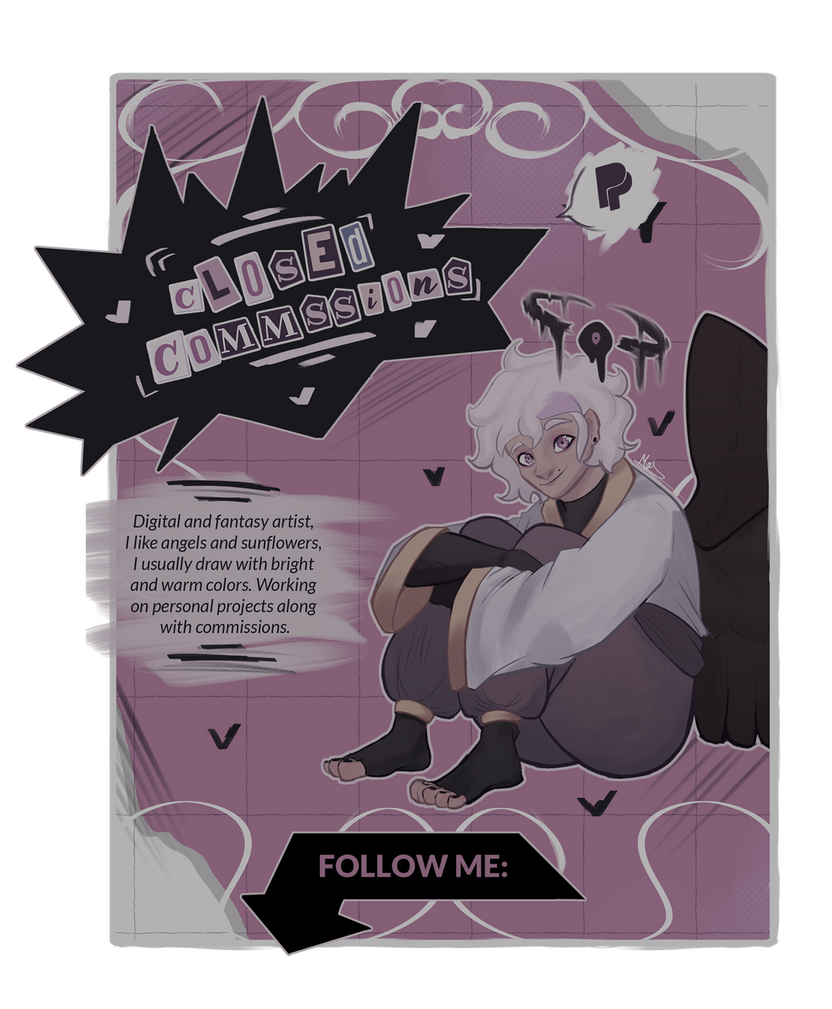 ❥ Commission takes 1 to 4 weeks to complete(Time may vary depending on the complexity of the commission).❥ Payment is in advance. (PAYMENT METHODS: PayPal, Ko-Fi.)❥ Once you request a commission you will enter an order list ( such list is public and you can see the status of your commission)❥ The commission will be sent to you by email.❥ PLEASE do not spam me asking for updates , I understand you want to see the progress , but DO NOT ask for an update every Day or every other day ; your commission is not the only one I am making , so it will not be finished in a day or two.❥Be sure you got the money before doing the payment.❥ If the assignment is too complicated or does not suit my artistic style, I will reject it.❥The relationship between the Artist and the client is PROFESSIONAL❥The prices above are the default per character, if the character design is too difficult or too simple, or there is more than one character the price may change.❥I can post the completed work online as my portfolio. (please let me know if you prefer not to have your commission posted online. I will respect your boundaries)